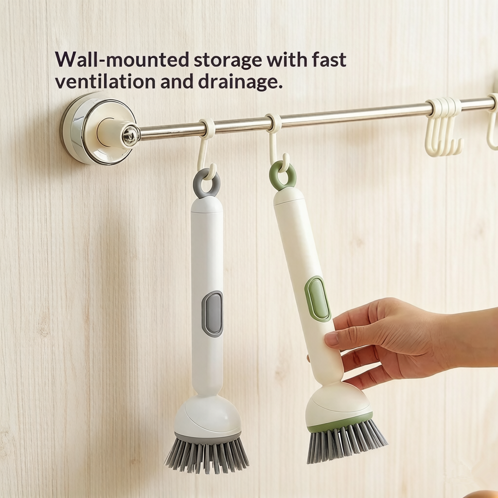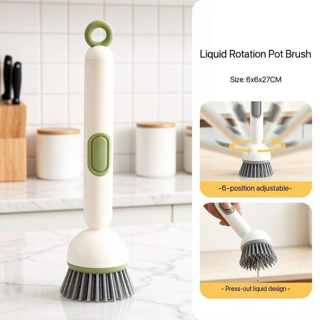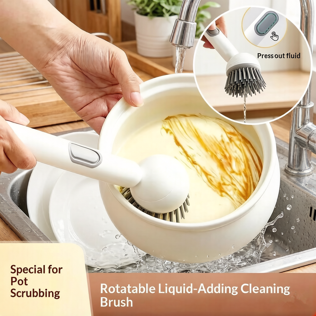 Ideal for cleaning pots, pans, sinks, and non-stick surfaces, this rotating dish brush with a built-in soap dispenser makes kitchen cleaning efficient and less strenuous.