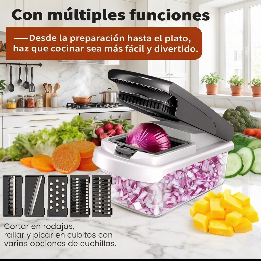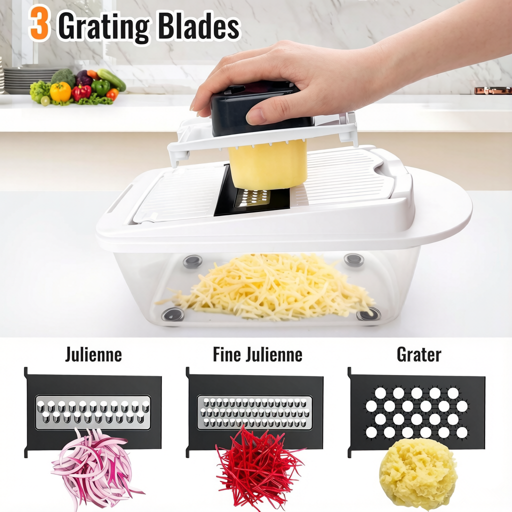 Perfect for quickly and efficiently chopping, slicing, and grating a variety of vegetables, fruits, and cheese, this versatile chopper simplifies meal prep in the kitchen.